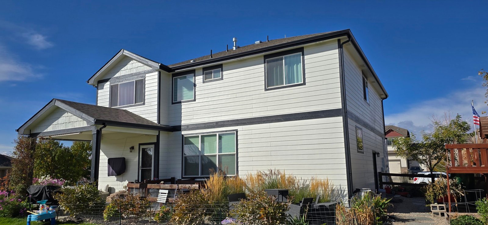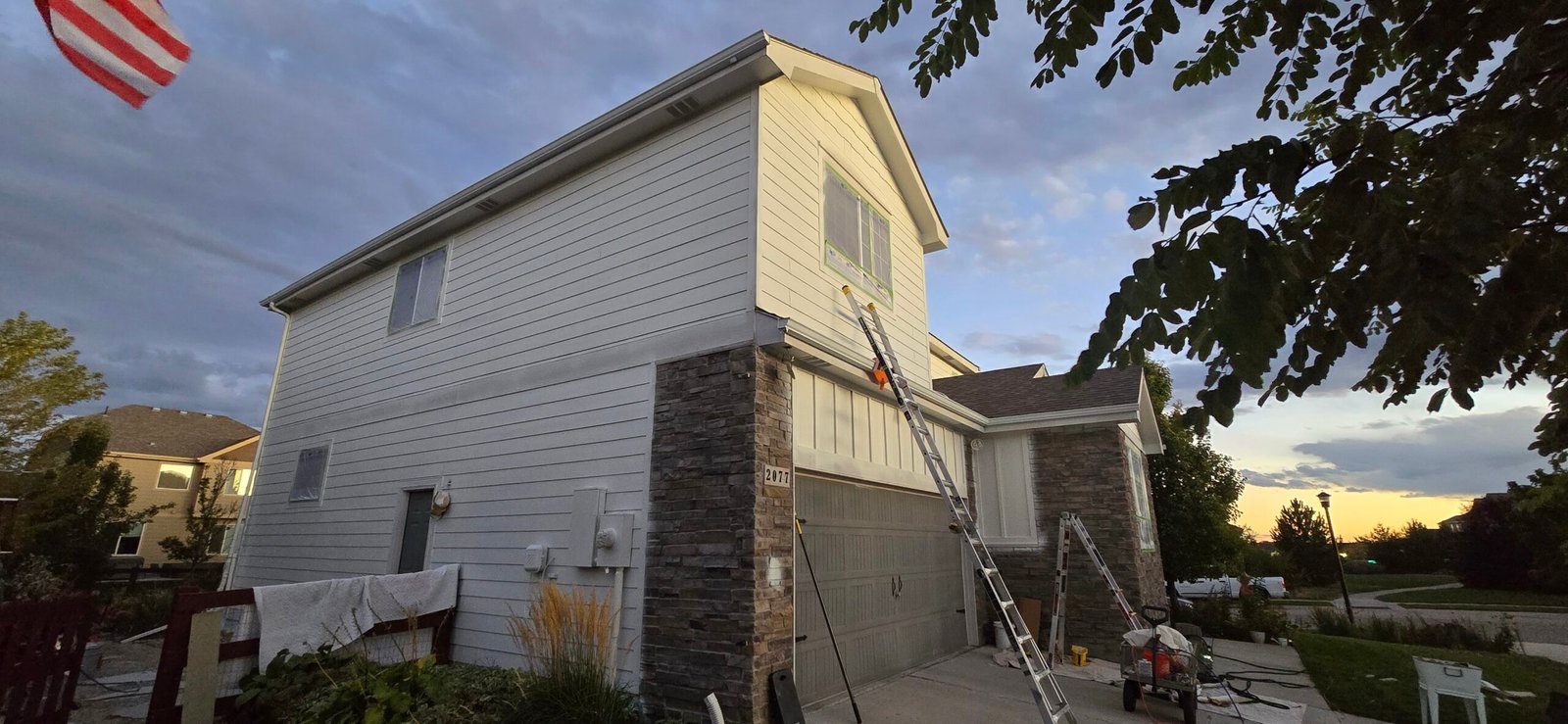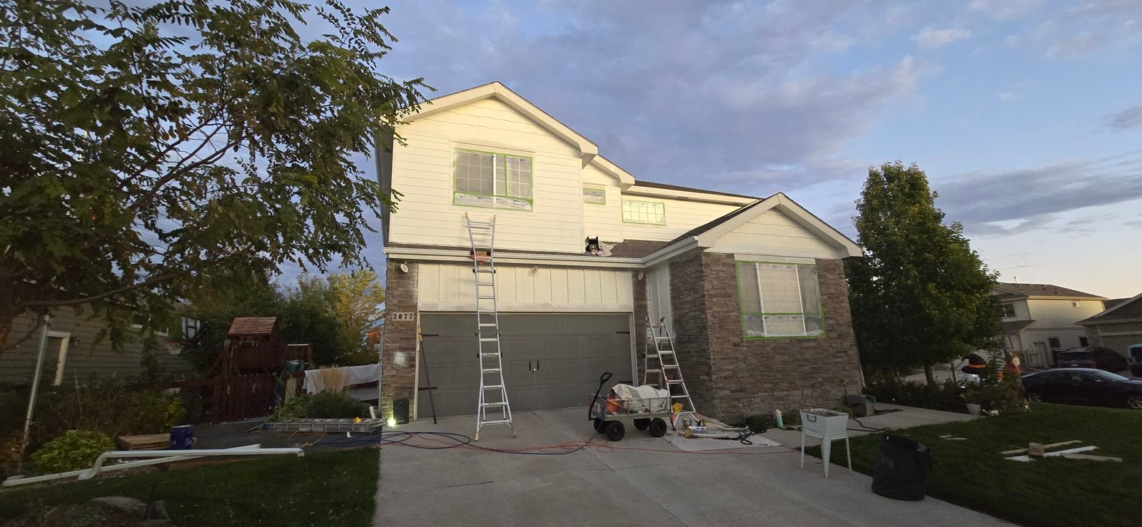 This project presented unique challenges, including a complete color overhaul executed during a period of extreme afternoon heat. To ensure a flawless finish, we implemented a rigorous schedule to prevent paint blistering caused by high surface temperatures. We also took specialized precautions to protect the property’s lush vegetation. The scope required expert application across a variety of surfaces, including garage doors, veneer rock, and composite siding, resulting in a cohesive and durable new look.